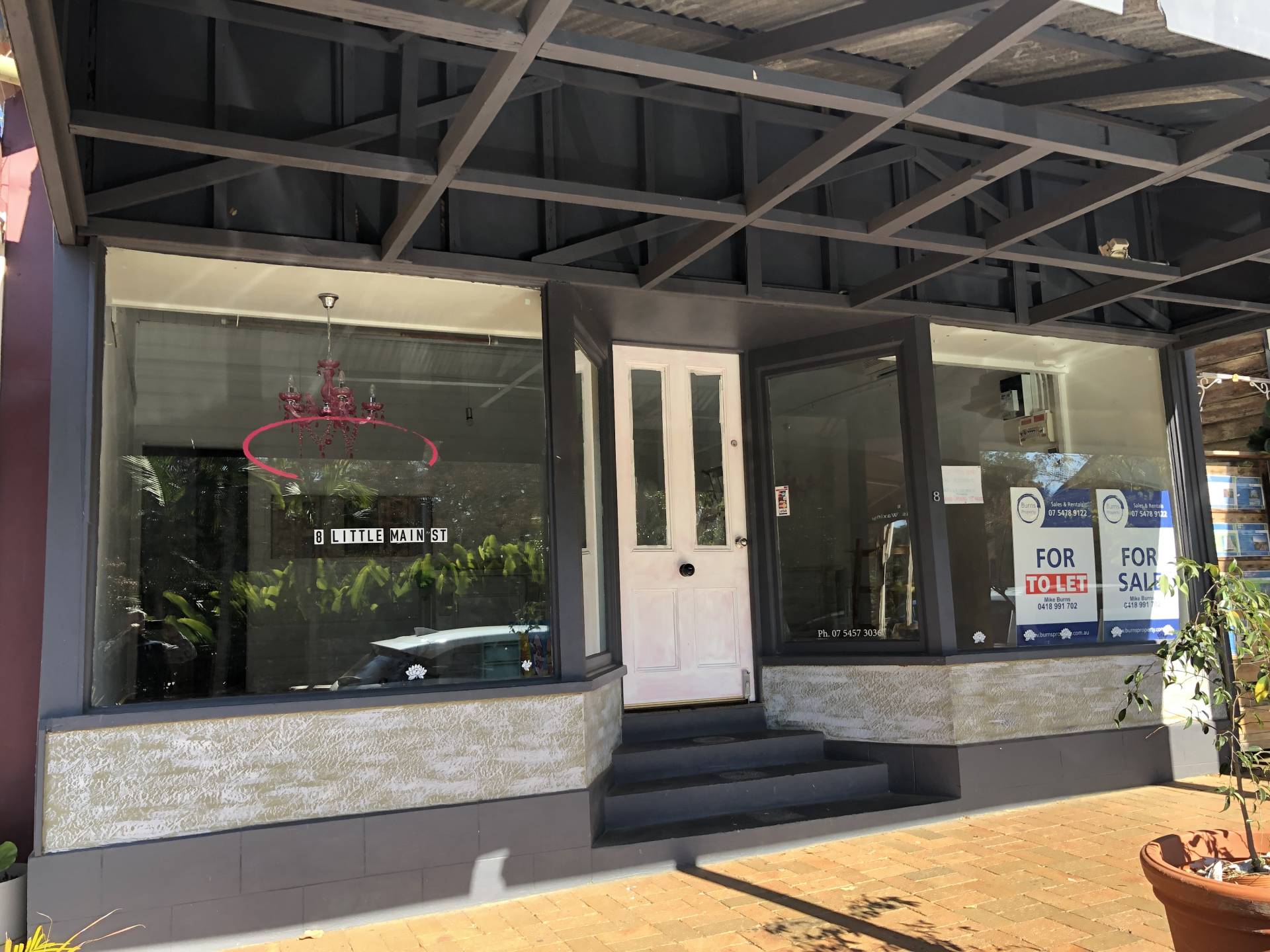 It includes the main shop area with street frontage, 2 rooms with air-conditioning, a small kitchen, a bathroom, plus an extra toilet/basin and a rear timber patio which opens to large terraced gardens.