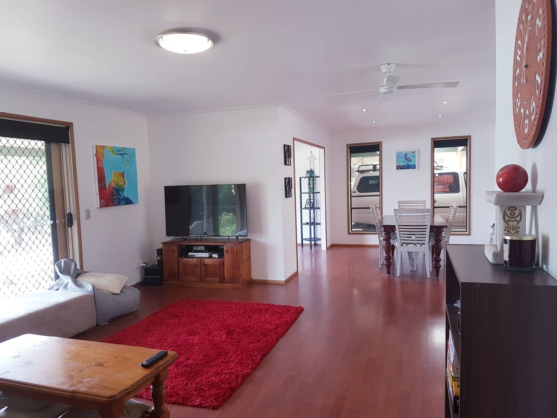 -Huge living area, dining, lobby & usable back yard.