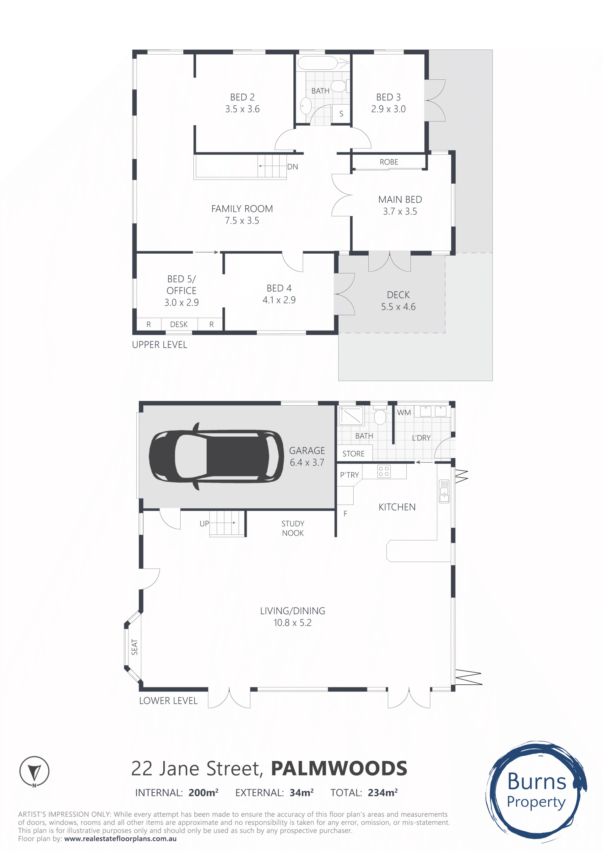 The upper level is still in mostly original condition and has many features that enhance warmth and character including hardwood timber floors, high ceilings, VJ walls and access to large north facing deck from two of the four bedrooms – there is also a second living area, bathroom, and a study/5th bedroom. This level could benefit from some updating and refreshing to restore its charm and make it truly shine again.
