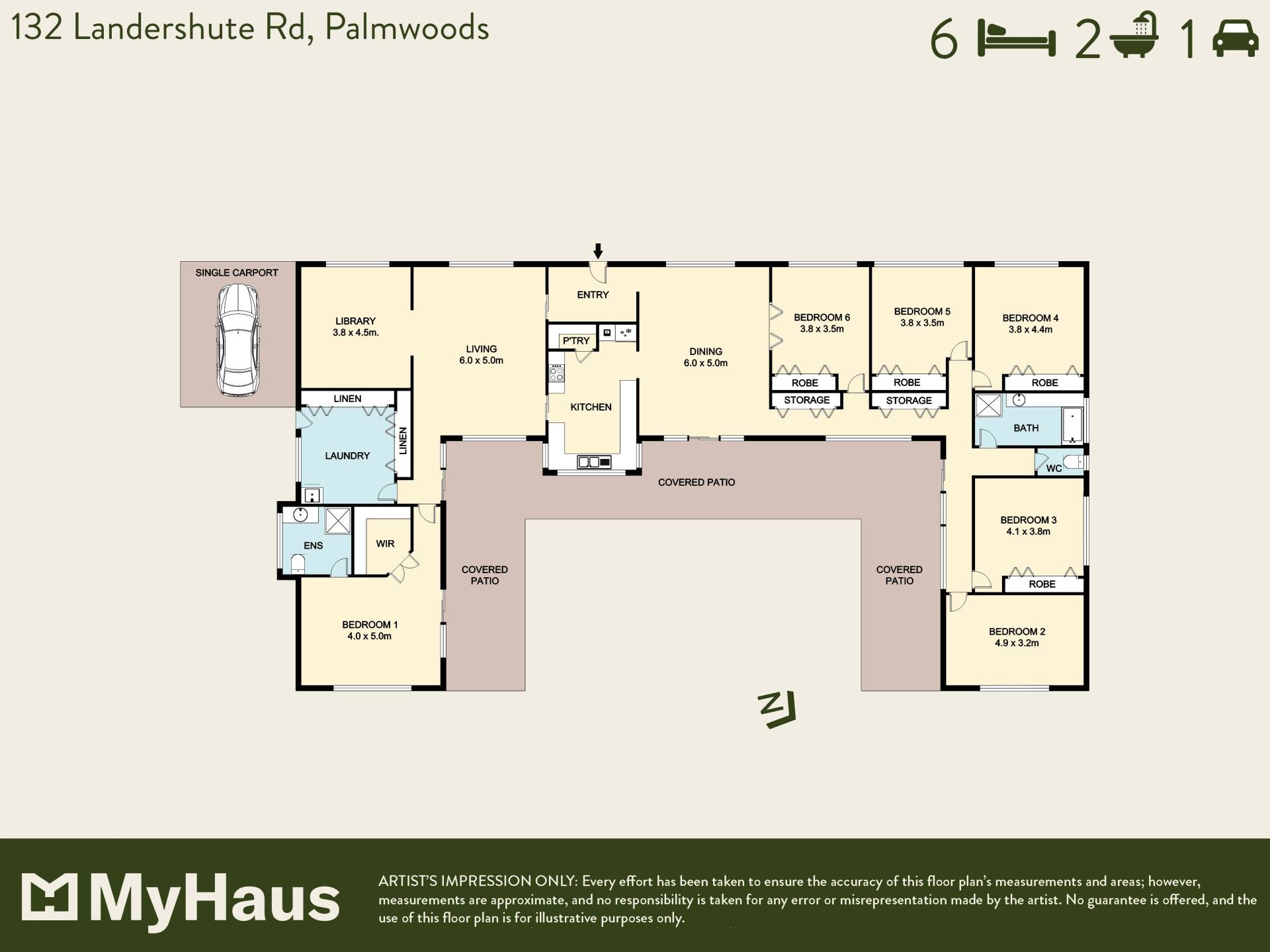 • 6 Spacious bedrooms