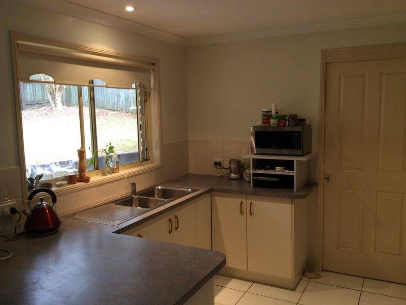 This lovely home in Palmwoods offers 3 good sized bedrooms all with built-ins. There is an ensuite to the main bedroom and ceiling fan. L-Shaped lounge dining with tiled floors and a ceiling fan.