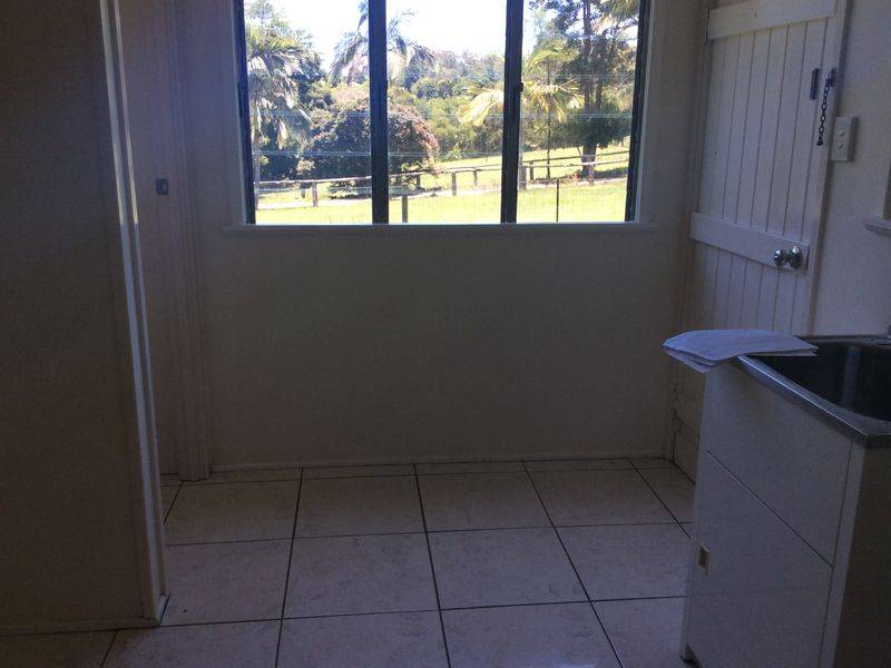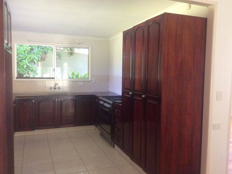 4 bedroom home on 1 1/4 acres. 2 bedrooms are a good size with a/cond in the main bedroom. 2 smaller bedrooms suitable for children or a study. Combined living / dining room with timber floors. Large kitchen. Bathroom has a bath and separate toilet. Covered verandah at the front of the home. Covered parking for 2 cars. Lovely landscaped grounds with plenty of shade trees to sit under on these hot summer days. Available after 5th January 2016.