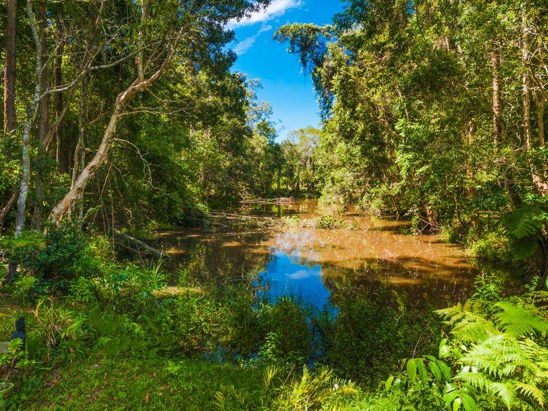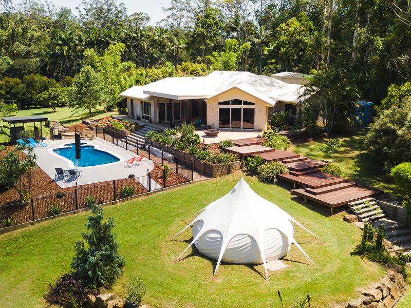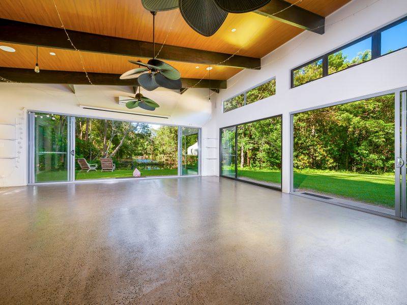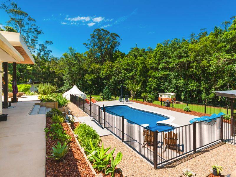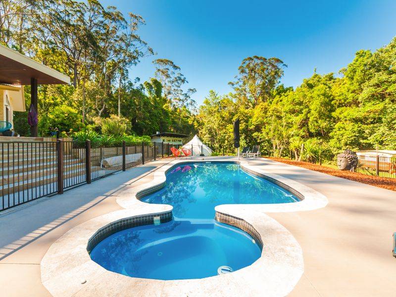 This extraordinary 10 acre property will entice your senses and you will find yourself so relaxed in all its ambient charm you simply won't want to leave. It is the property that keeps on giving. A spacious elevated family home, chemical-free inground pool, rainforest walks and if taking a meditative outdoor bath, having a sauna or yoga sessions in the purpose-built studio overlooking the billabong sounds appealing, you should experience it for yourself.