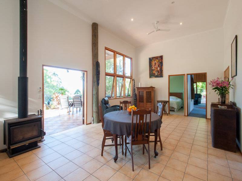 Soaring ceilings, open plan living and enormous outdoor entertaining area. Rustic studio, huge shedding, two permanent creeks, waterfalls, spring and dams.