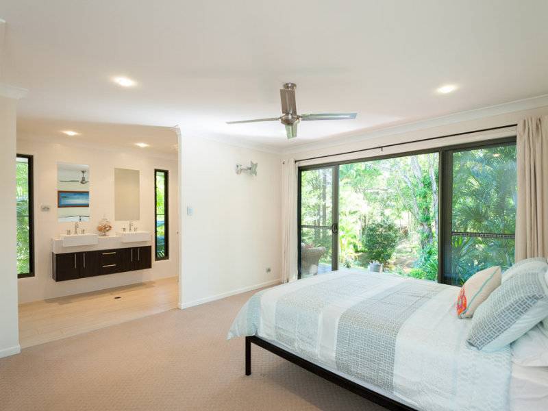 In more detail the home offers separated living areas with a central kitchen. The master bedroom is away from the others and has a large exposed ensuite with double vanity and shower. The bedroom has its own private deck overlooking the rain forest.