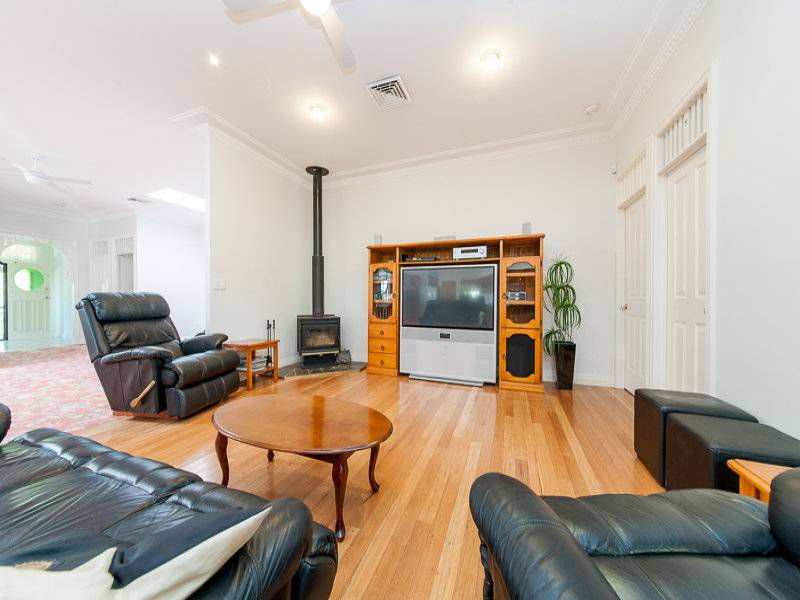 The front entrance is via a classic staircase leading into the wide hallway. Traditional fretwork and 10 foot ceilings welcome you into this beautiful home. There are 5 generous bedrooms (master with ensuite and walk in robe - the others have oversized built in wardrobes) plus there is also a study/office/nursery. Formal dining room with French doors opening to the wide verandah that wraps 3 sides of this character oozing home. A central entertaining area big enough to hold a function and a kitchen to delight with granite benchtops, rosewood cabinetry and a 900mm gas cooktop. Reverse cycle ducted airconditioning, ceiling fans, a firewood heater and roof insulation allow year round seasonal comfort.
